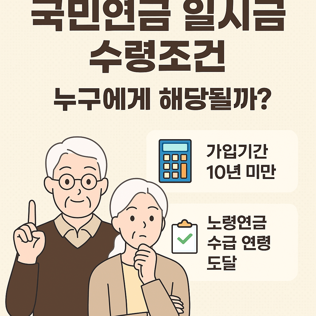 노후 대비의 필수 제도 중 하나인 국민연금. 많은 분들이 국민연금 수령에 대해 ‘매달 받는 연금’만 생각하지만, 사실 일시금 형태로도 수령이 가능합니다. 특히, 10년 미만의 짧은 납부 기간을 가진 분들이라면 국민연금 일시금 수령조건을 꼭 확인해야 합니다.국민연금 일시금이란?국민연금 일시금은 한 번에 정산해 돌려받는 방식으로, 주로 두 가지 형태로 나뉩니다.첫째는 반환일시금, 둘째는 사망일시금입니다.이 두 가지는 수령 대상자와 지급 요건이 다르므로 정확히 구분해야 합니다.반환일시금은 국민연금 가입자가 10년 미만 납부하고, 노령연금 수급 나이에 도달했을 때 받을 수 있는 일시금입니다.사망일시금은 국민연금 가입자 또는 수급자가 사망했을 경우, 유족에게 지급되는 일시금 형태의 급여입니다.국민연금 일시금 수령..