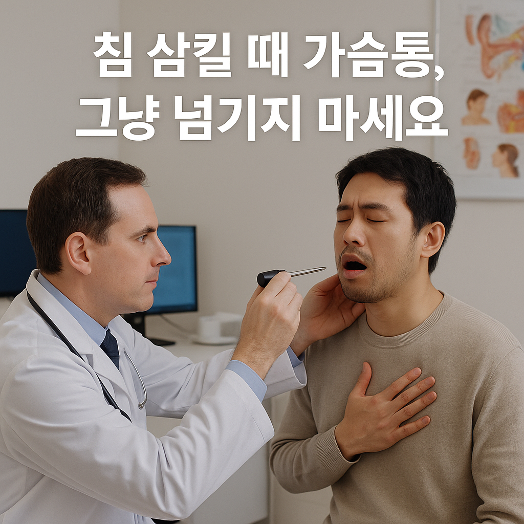 침 삼킬 때 가슴 통증 원인과 치료법 총정리단순한 가슴 통증과 달리, '삼키는 행위'가 직접적인 자극이 되어 통증을 유발한다면 식도나 식도 주변의 조직에 문제가 있을 가능성이 큽니다. ✔침 삼킬 때 가슴 통증의 주요 원인역류성 식도염역류성 식도염은 위산이 식도로 역류하여 점막을 자극하는 질환으로, 침을 삼킬 때 가슴 중앙에 따끔하거나 타는 듯한 통증을 유발할 수 있습니다. 대표적인 증상은 속 쓰림, 트림, 목 이물감 등입니다.식도염 및 식도 궤양강한 약물 복용, 세균 감염, 자극적인 음식 섭취 등이 원인이 되어 식도에 염증이나 궤양이 생길 수 있습니다. 이로 인해 침을 삼키는 단순한 동작에도 가슴 안쪽에서 통증이 발생합니다. 연하통(삼킴 장애)연하통은 삼키는 동작 자체가 통증을 유발하는 상태로, 대부분..